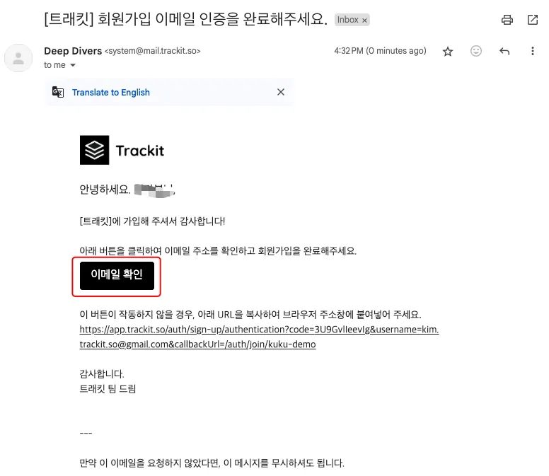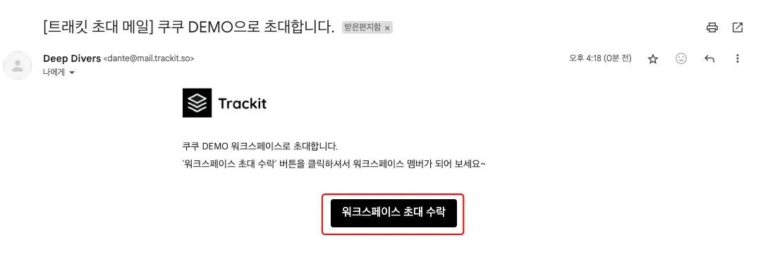 1. 이메일로 도착한 트래킷 초대 메일을 수락합니다.