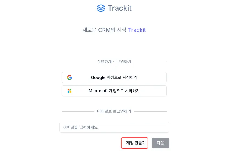 2. 계정 생성 페이지로 이동합니다.