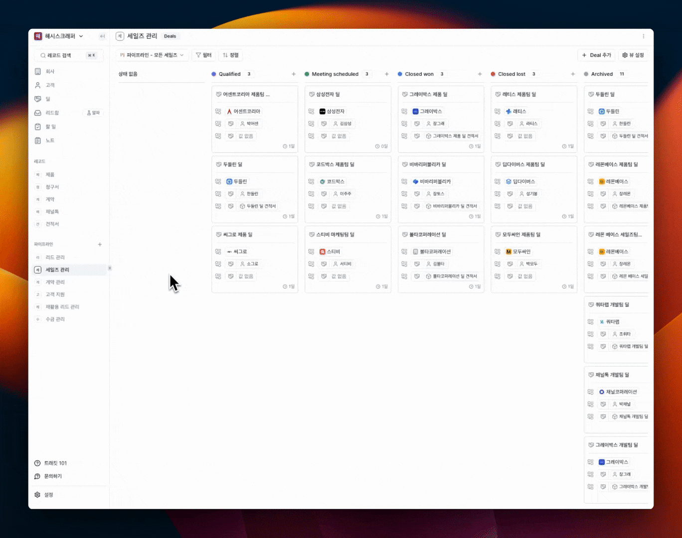 - 파이프라인 뷰 : 세일즈 프로세스 관리