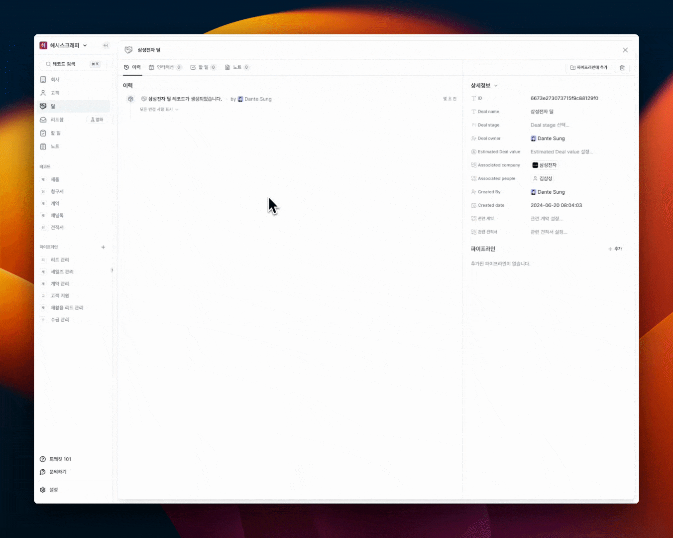 리드를 확인 후 딜을 등록합니다.